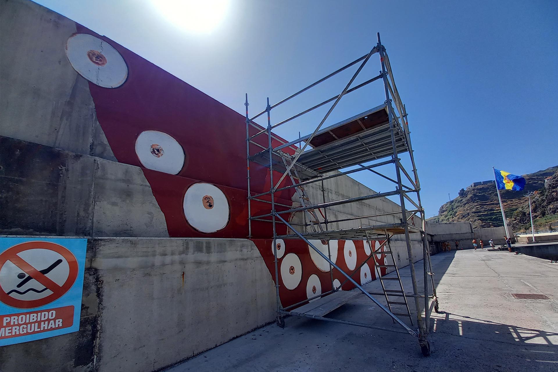 A artista madeirense Bárbara Gil iniciou, no final do mês de julho, um projeto artístico que irá revestir perto de 30 metros de muralha, a convite do Porto de Recreio da Calheta.